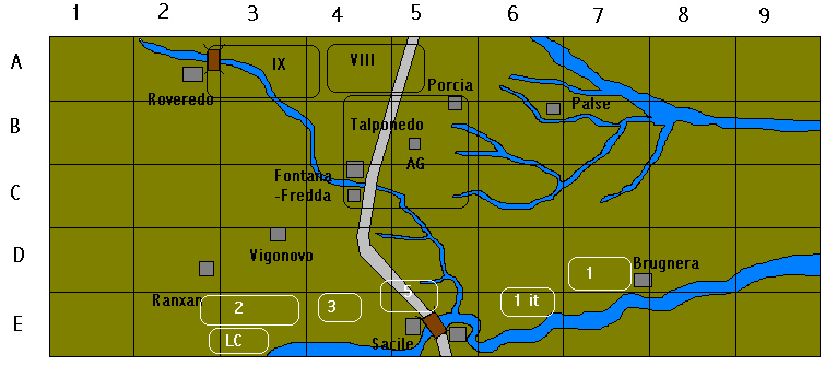 French Deployment. The French line of retreat is through Sacile. That bridge is