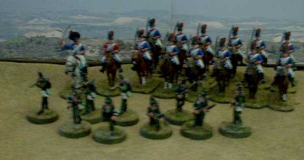 fusiliers to move but 3". The voltigeurs advance 2" to their position. The