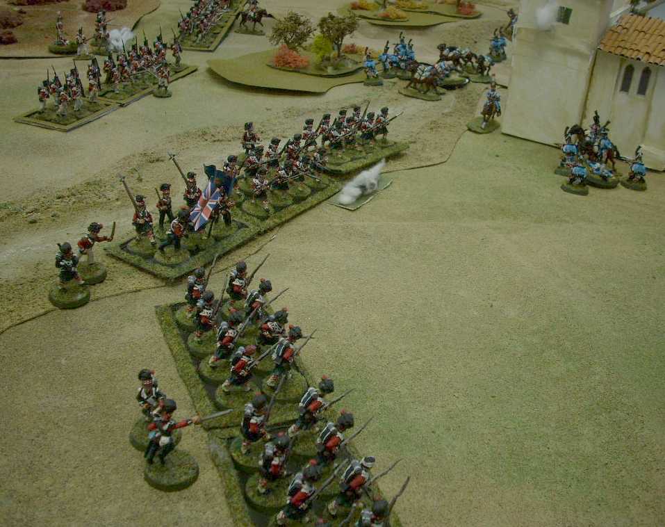 Two companies of French infantry deploy wide on the left against the Highlanders