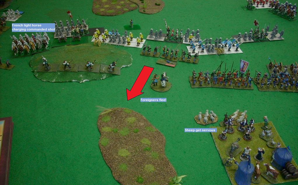 The Germans were apparently marching through the French countryside, destroying villages. The French were not too troubled by the destruction though as their army camp was extremely well stocked with cattle, chickens, barmaids, and sheep. The Germans won the initiative.