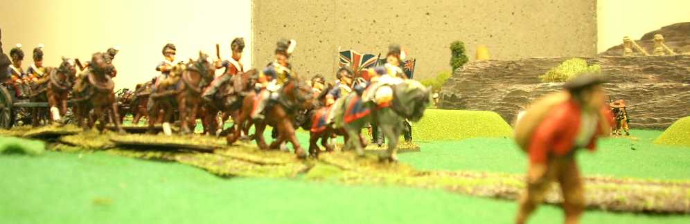 Lieutenant McFitzwilliamson, on orders from Major McGonagall of the 42nd Highlanders, advances the guns of the Royal Horse Artillery well forward of the British brigade.