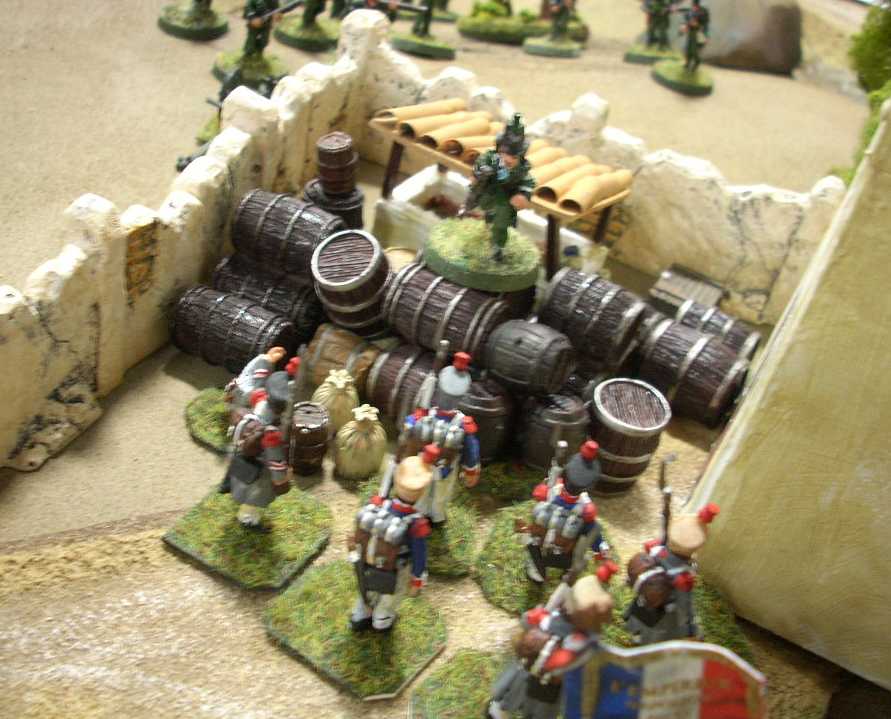 The crews of the remaining artillery abandoned their pieces and fled for the Monastery where they would join the grenadiers in a last ditch defense. Quietly clambering over the walls of the courtyard, taking full advantage of the chaos, was Sgt Corgi though. He had left his men in Hawkesworthe's capable hands and was even now working on fuses at the powder magazine.